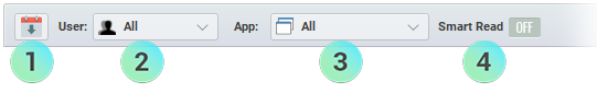 on top with a single click, filter records by User or Application, Most importantly, you can